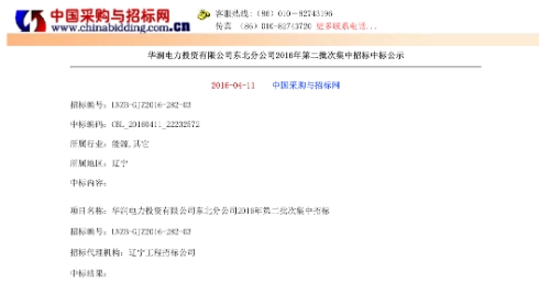 華潤電力2016年第二批次集中招標(biāo)中一舉中標(biāo)